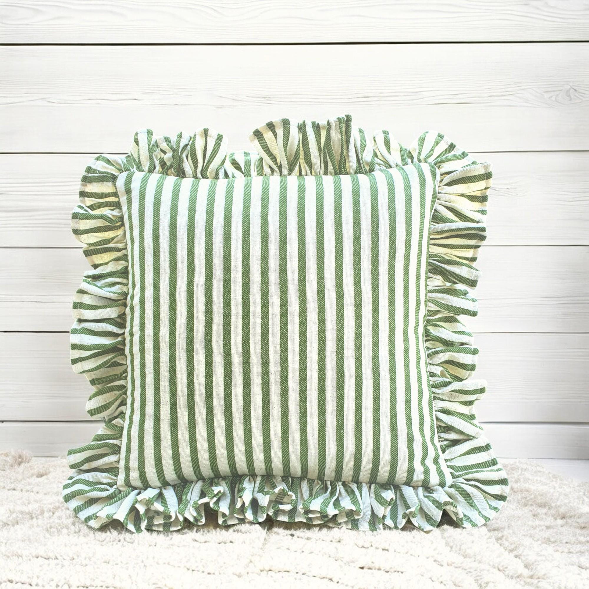 Bohemian Frill Linen Striped Pillow Cover - Different Color Options With Frill Edges - Hello Mello Store
