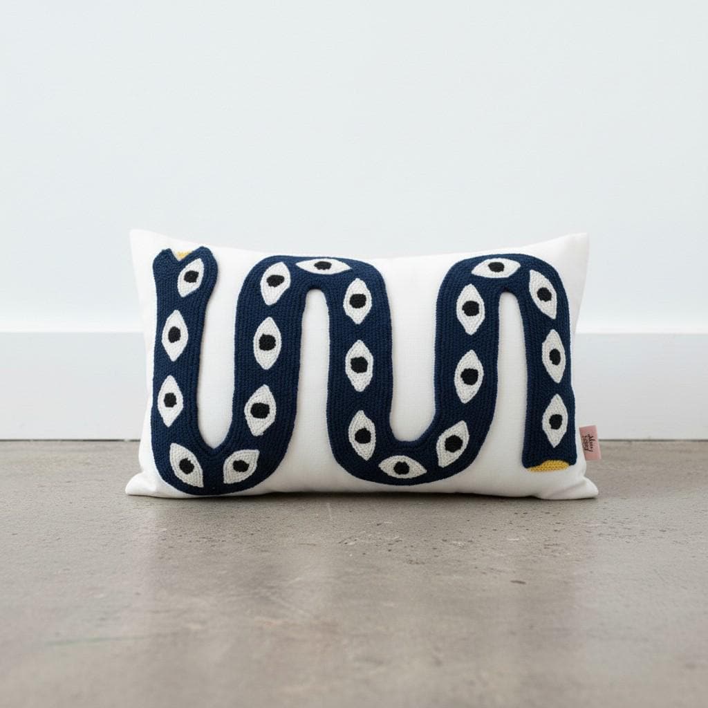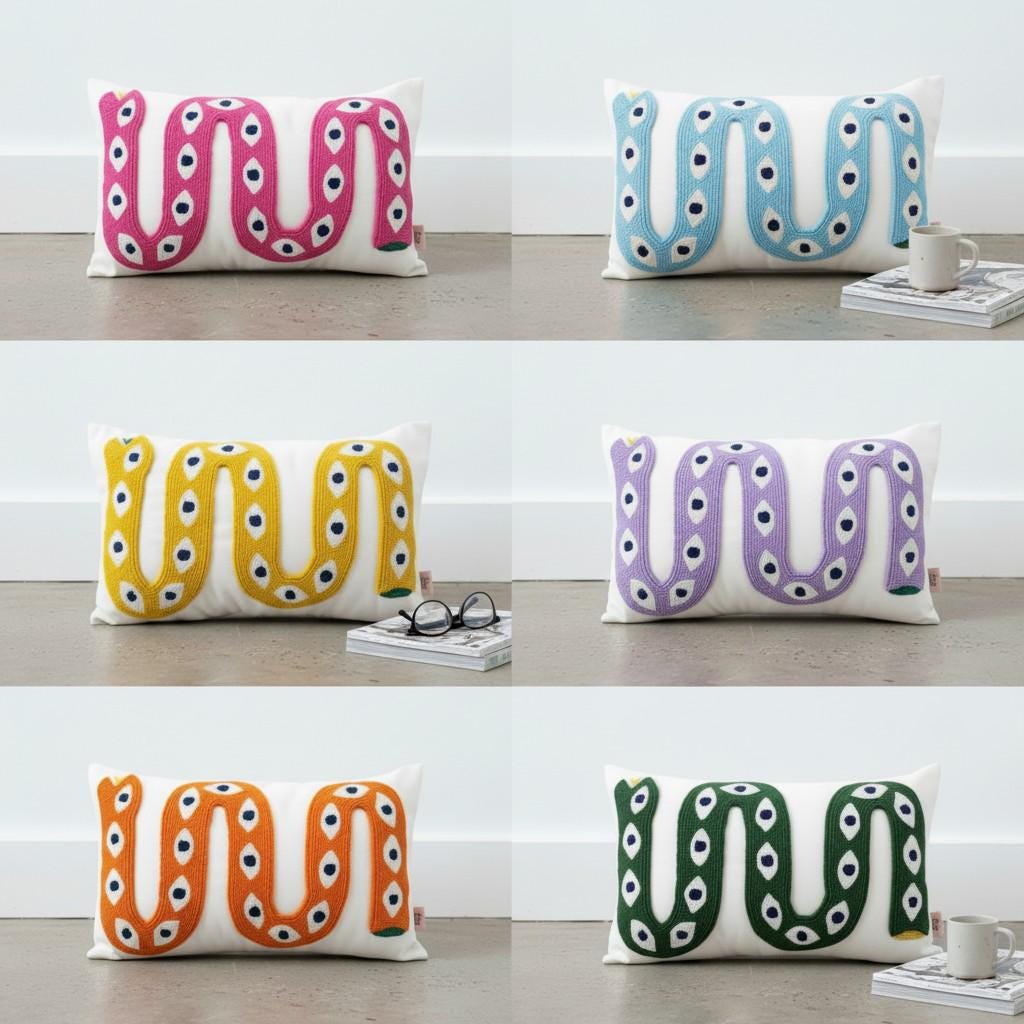 Bring a bold artistic touch to your home with this handmade snake pillow cover, designed for lovers of unique and eclectic decor. This eye-catching piece features a vibrant snake motif with an intricate eye pattern, perfect for adding a statement to any boho-inspired space.