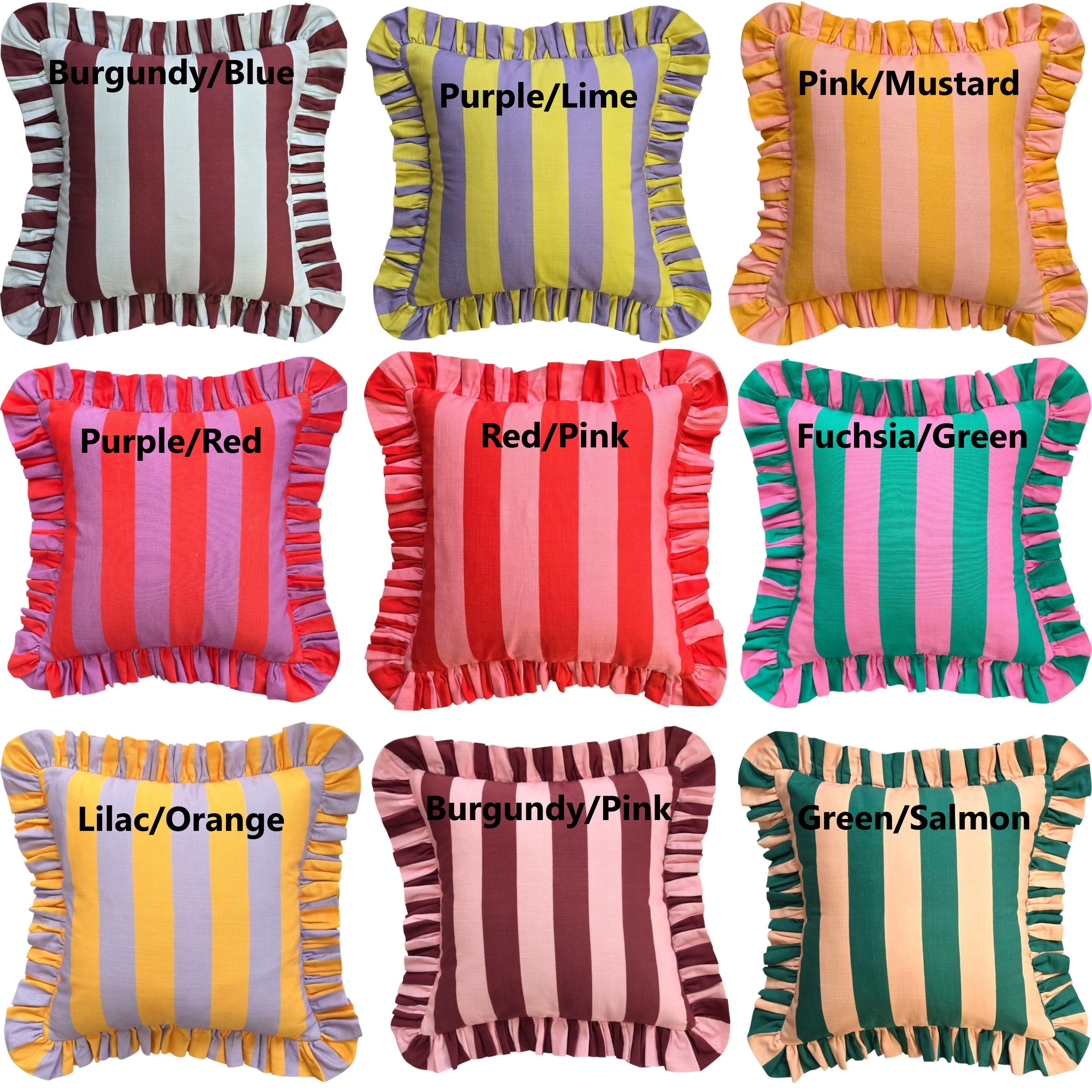 Bohemian Ruffle Striped Pillow Cover - Frill Striped Pillow Cover - Different Color Options With Frill Edges - Hello Mello Store