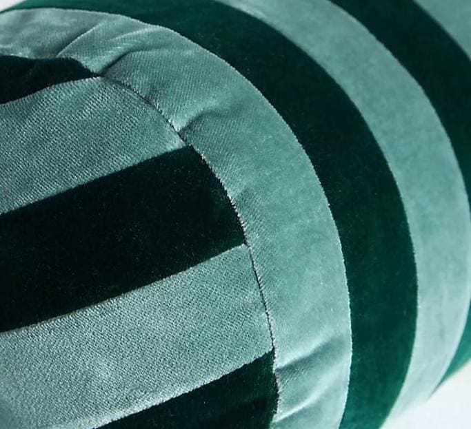 Add a playful yet modern touch to your home décor with these colorful striped bolster pillows! Each pillow is handcrafted with great attention to detail, using two different velvet fabrics that are carefully cut and stitched together in stripes. This labor-intensive process creates a unique, high-quality cushion that is both comfortable and visually striking. Perfect for your sofa, bed, or reading nook, it brings warmth and personality to any space.