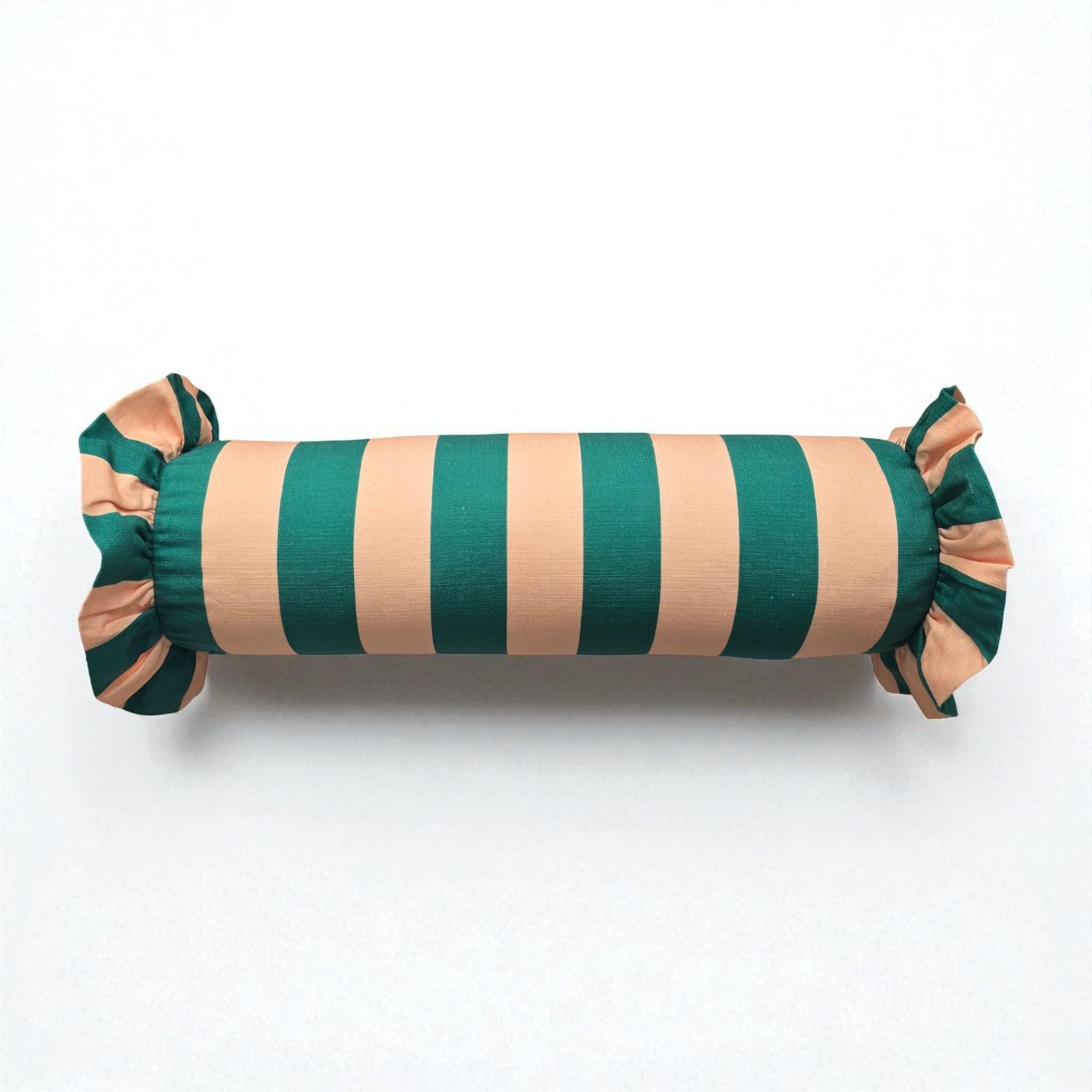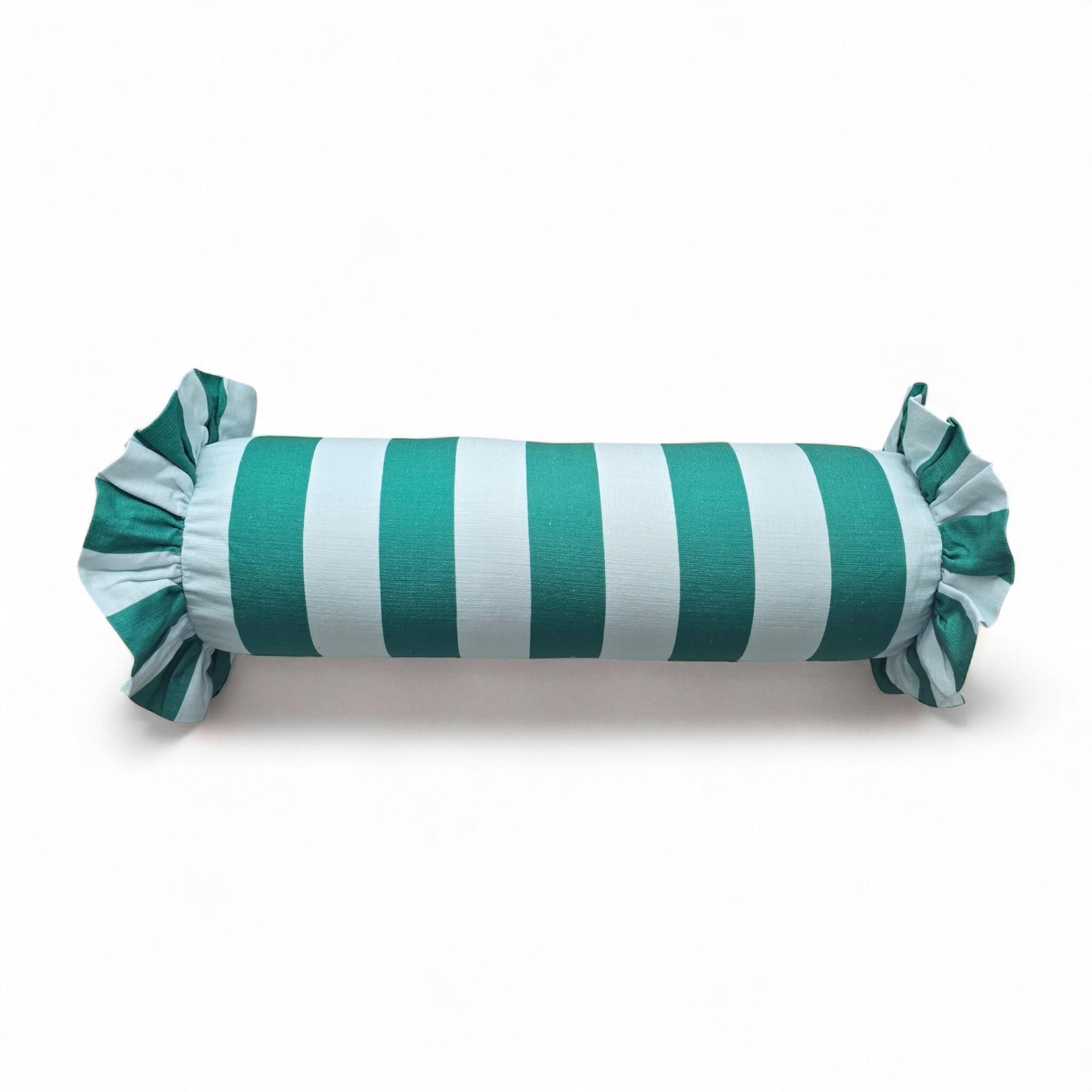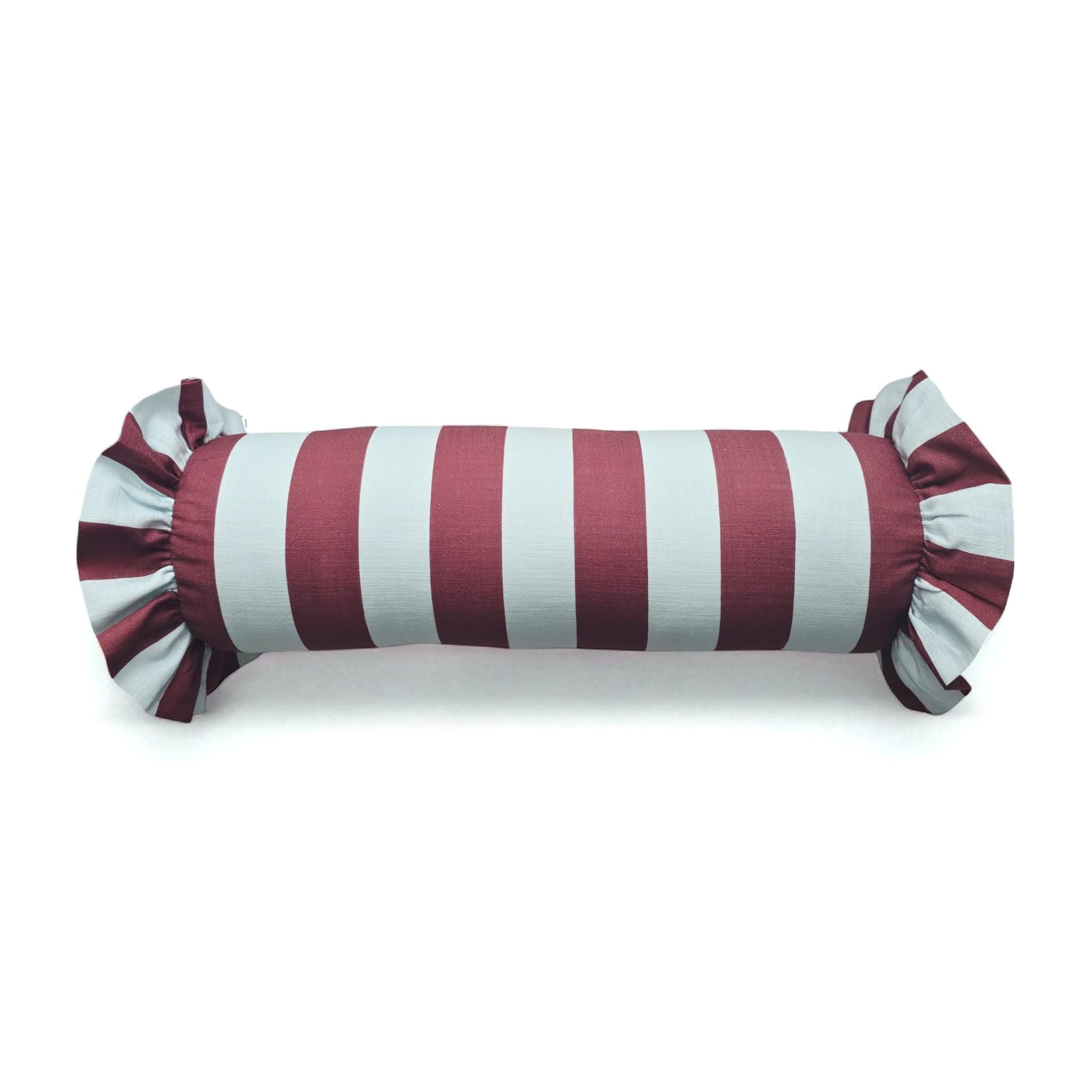 Striped Bolster Pillow Cover Linen Cushion with Ruffles | Colorful Handmade Decorative Pillow for Couch Bed Sofa Decor | Candy Style Decor