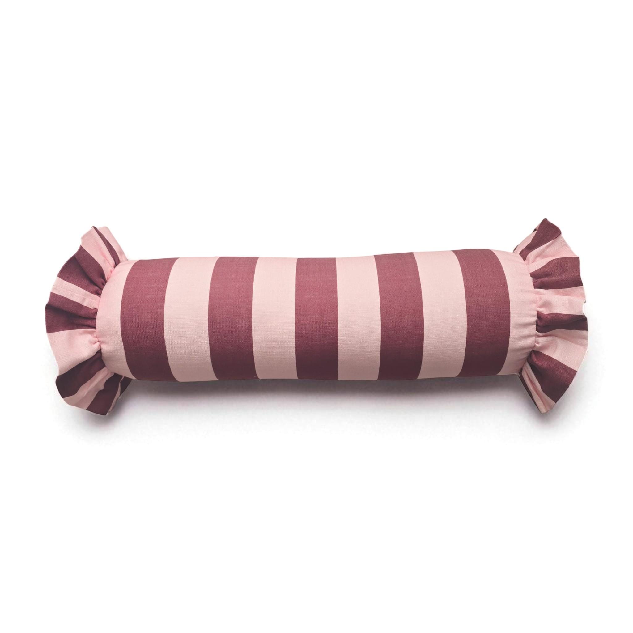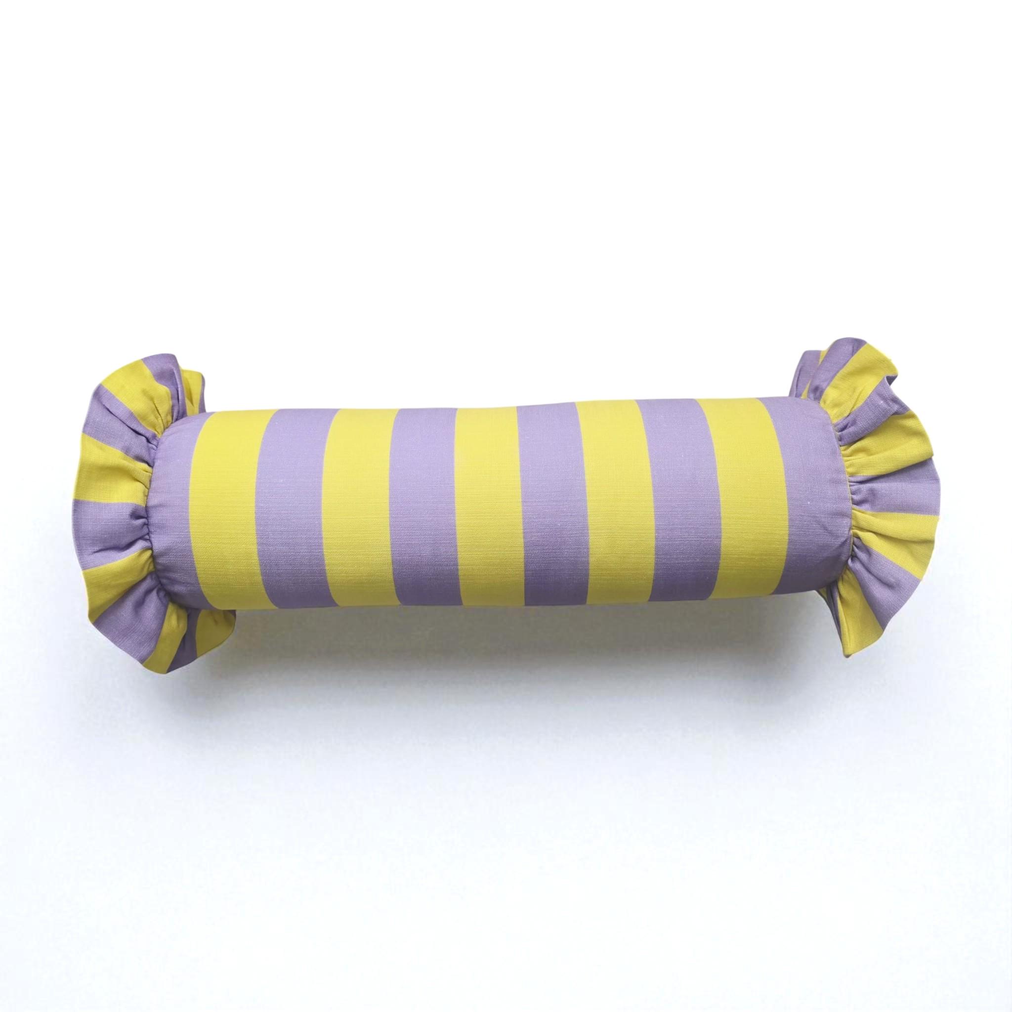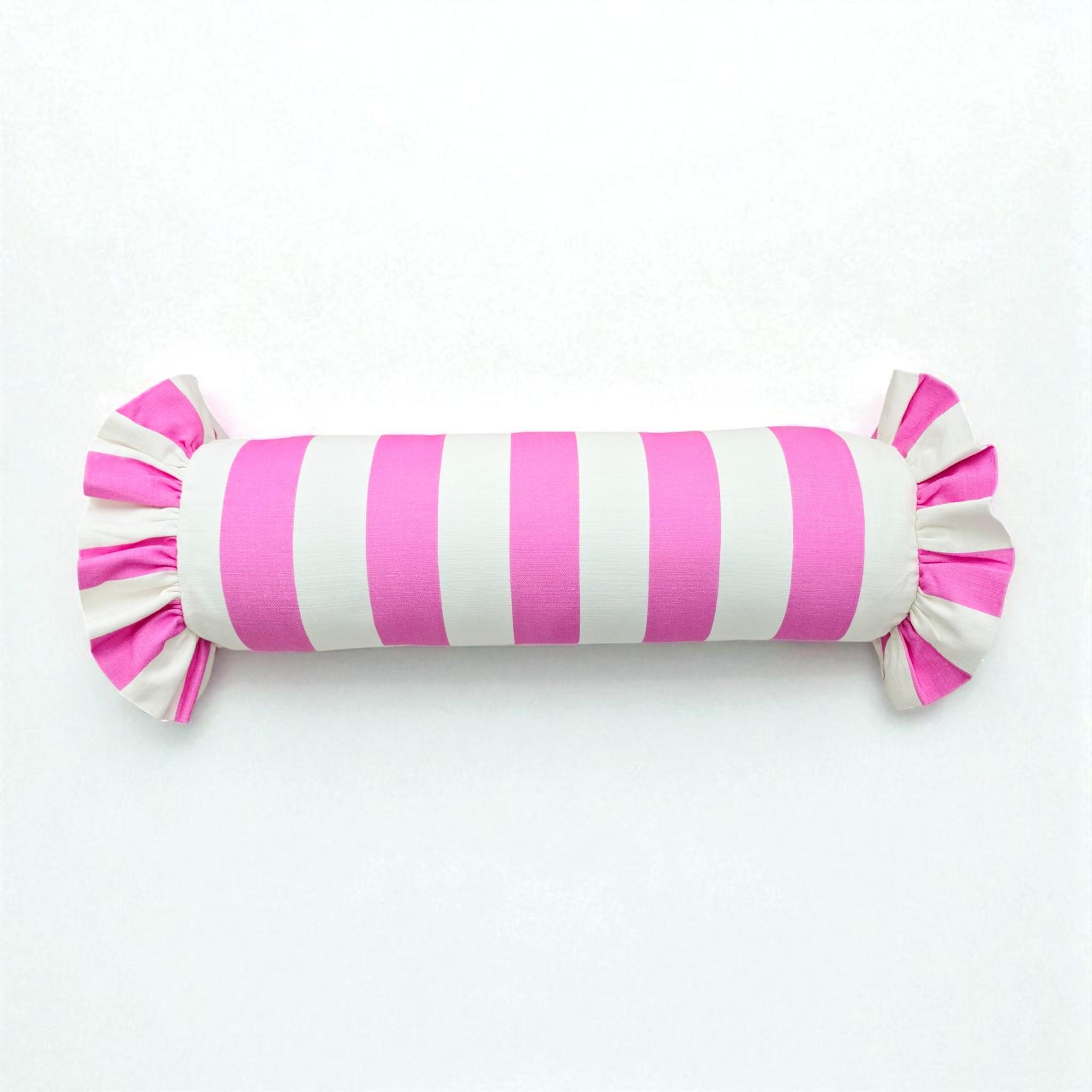 Striped Bolster Pillow Cover Linen Cushion with Ruffles | Colorful Handmade Decorative Pillow for Couch Bed Sofa Decor | Candy Style Decor