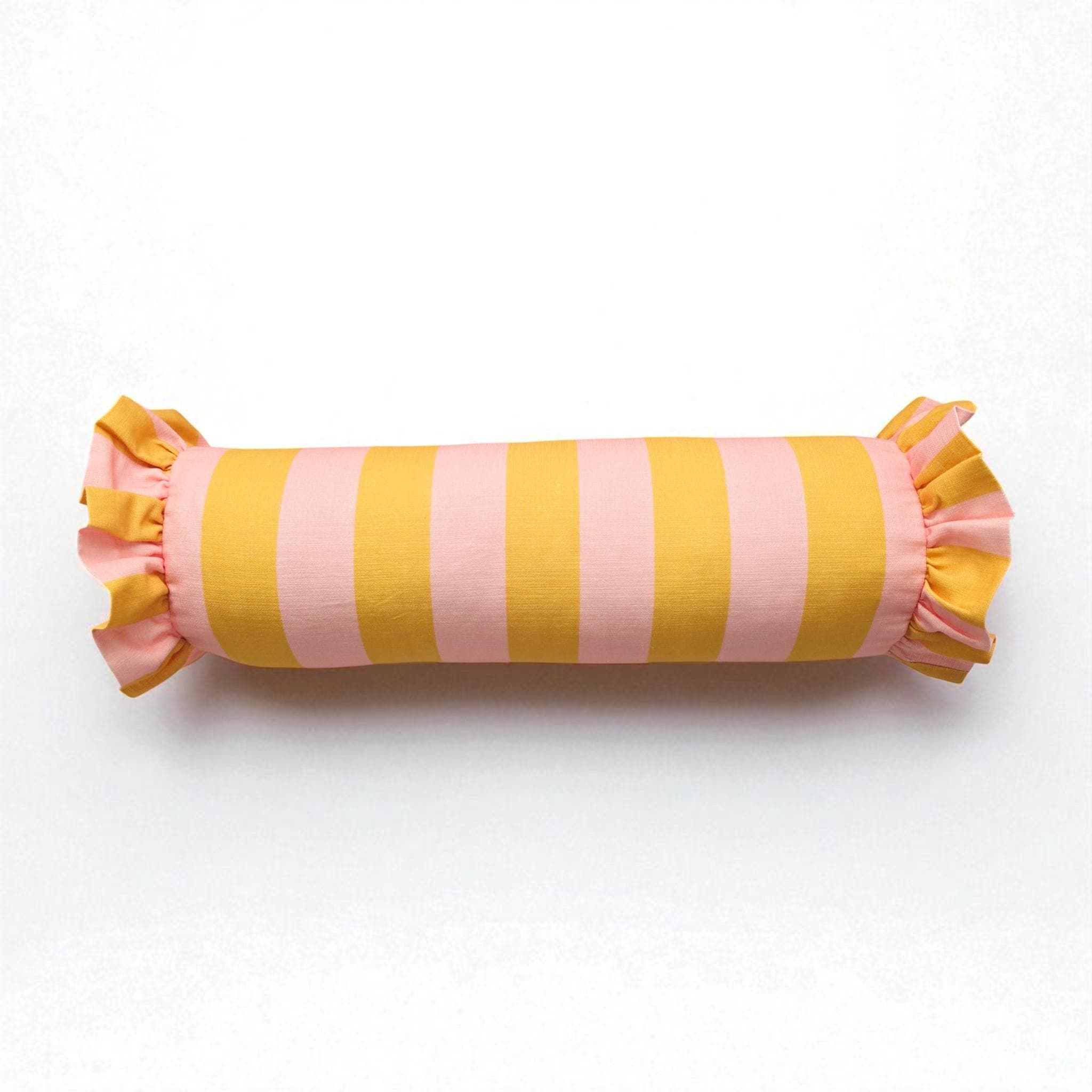 Striped Bolster Pillow Cover Linen Cushion with Ruffles | Colorful Handmade Decorative Pillow for Couch Bed Sofa Decor | Candy Style Decor