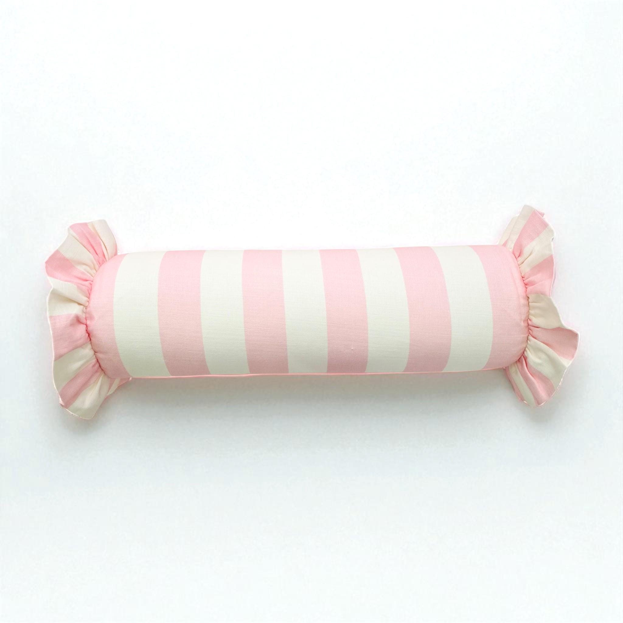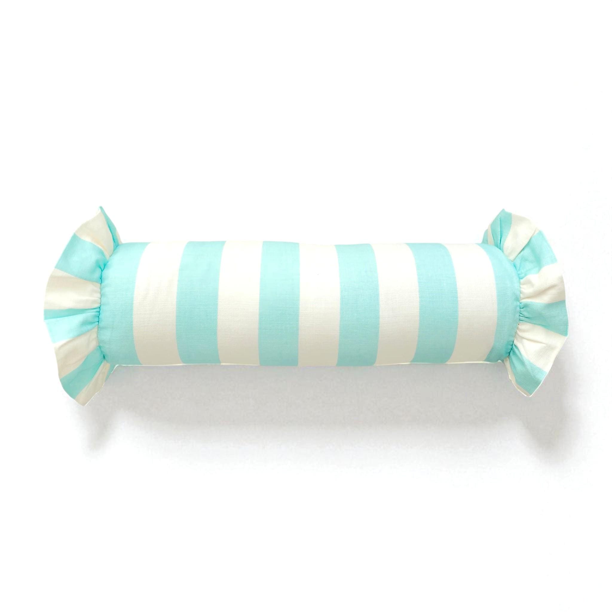 Striped Bolster Pillow Cover Linen Cushion with Ruffles | Colorful Handmade Decorative Pillow for Couch Bed Sofa Decor | Candy Style Decor