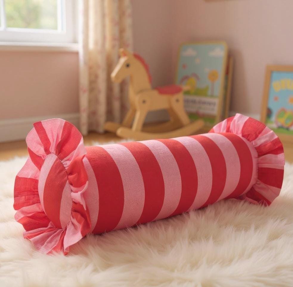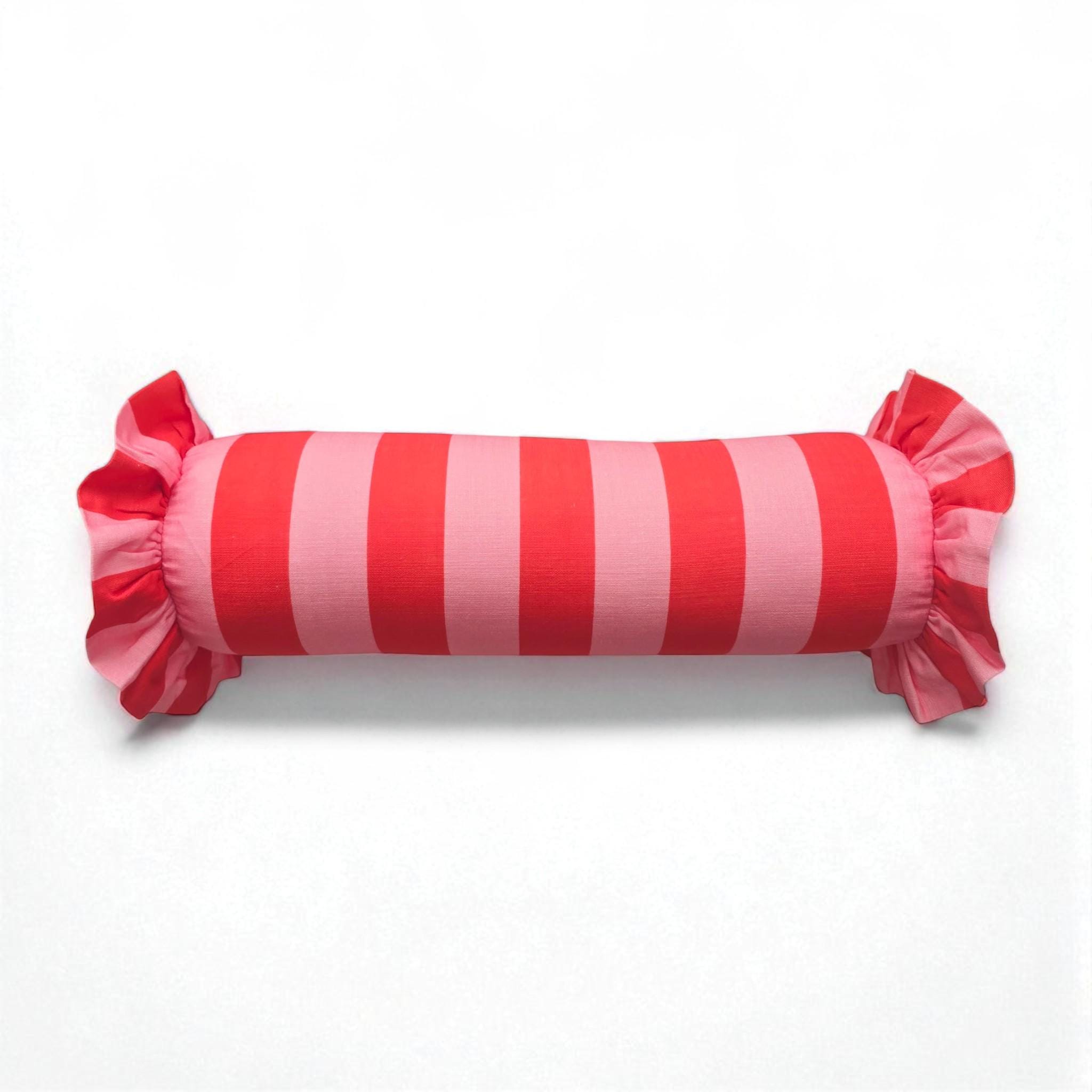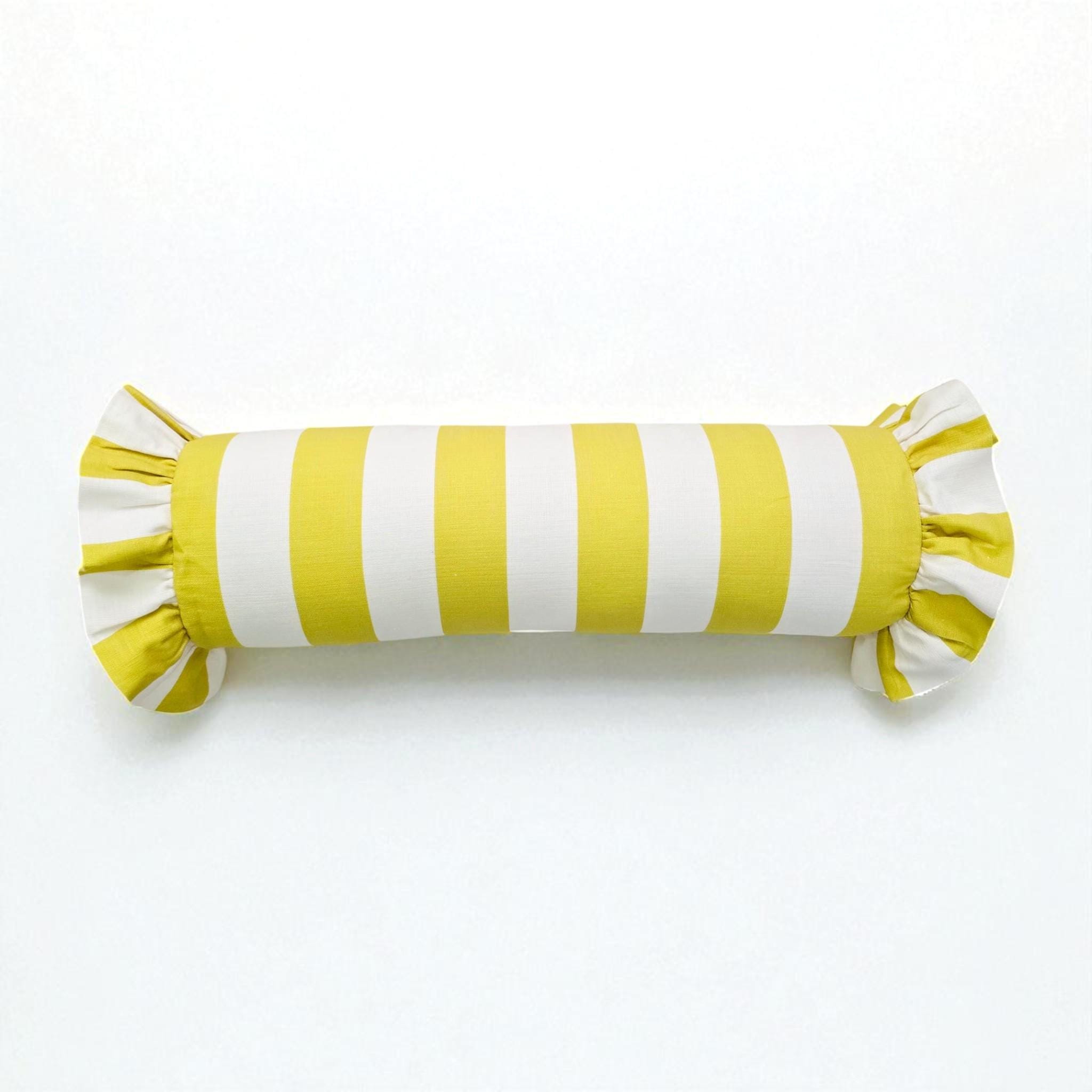 Colorful Striped Bolster Pillow with Ruffles | Handmade Cotton Linen Cushion | Playful Home Decor Accent for Sofa or Bed | Kids Room Decor