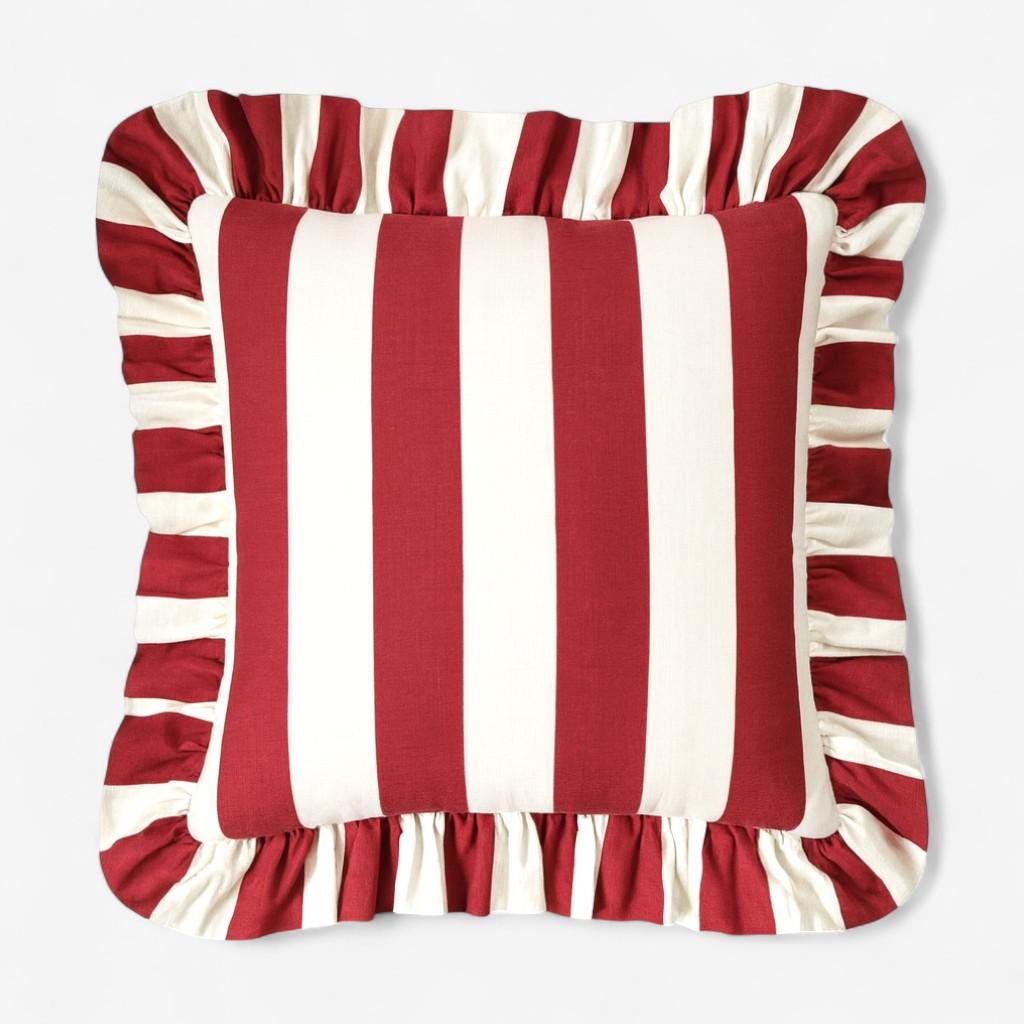 This striped linen throw pillow cover combines timeless design with handmade quality. The ruffled edges create a soft, romantic feel, while the bold stripes add a touch of modern elegance — a perfect way to refresh your home décor effortlessly.