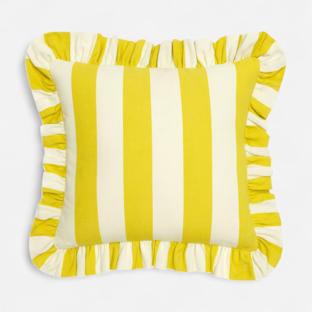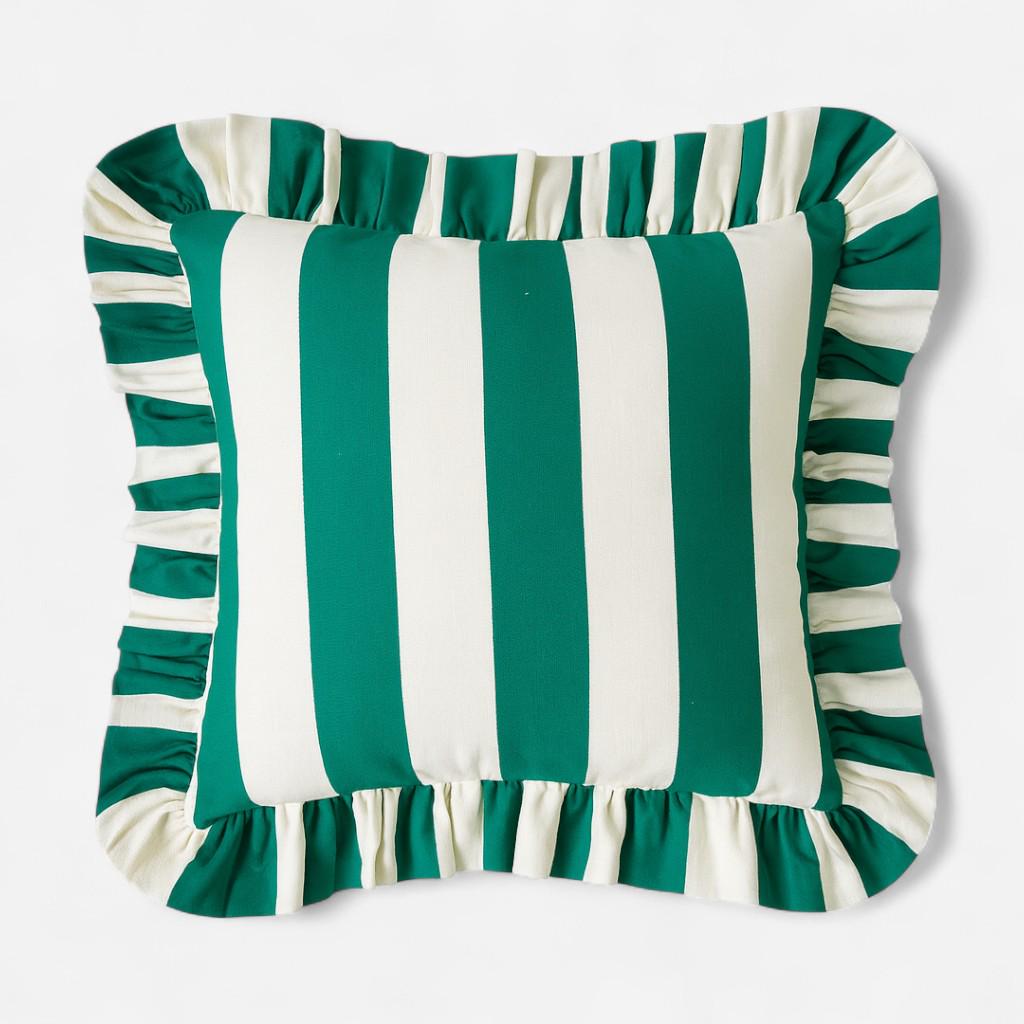 🌿 Striped Ruffled Linen Pillow Cover | Handmade Decorative Cushion for Sofa or Bed