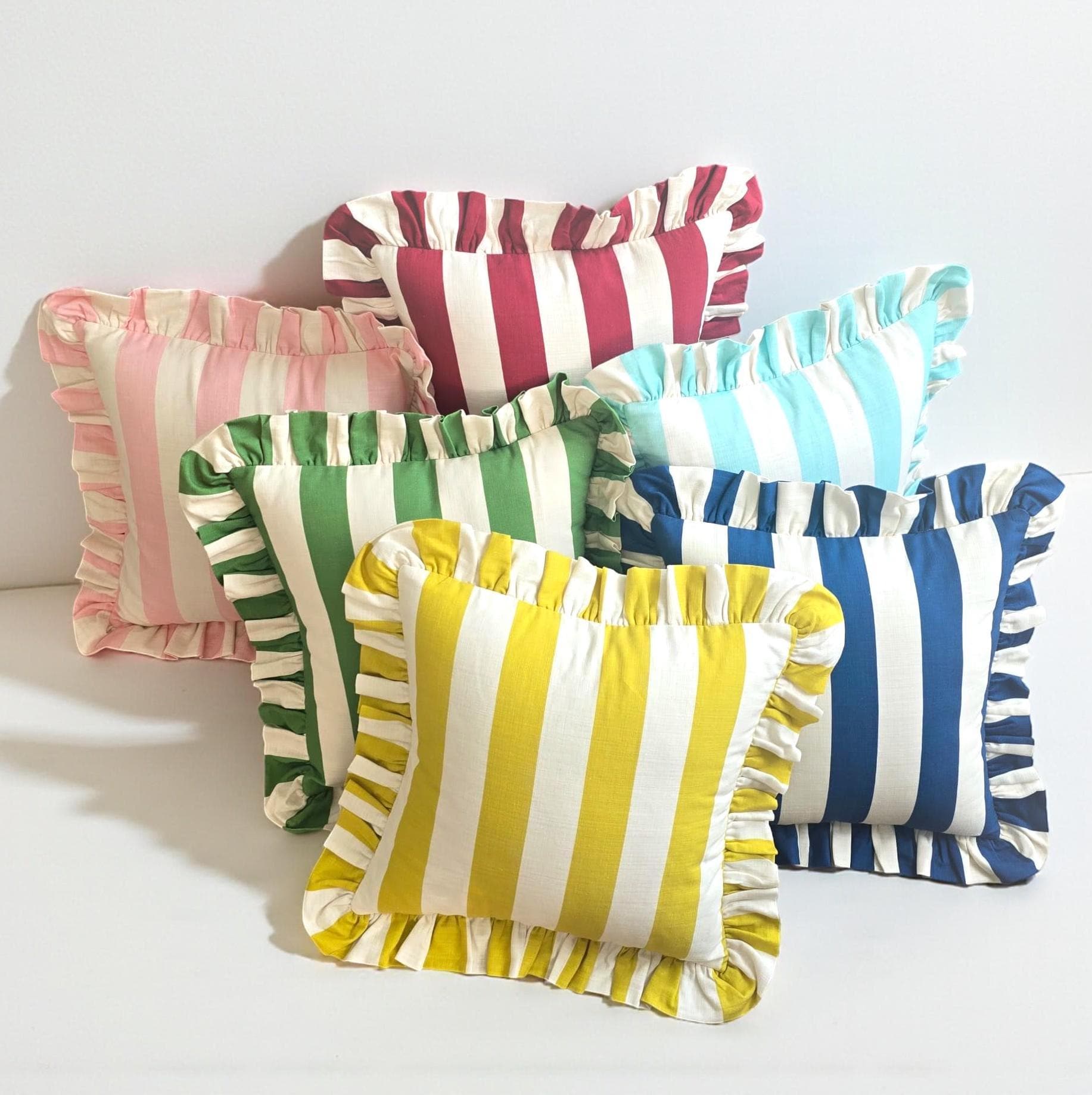 Bring charm, color, and comfort to your home with our Striped Ruffled Linen Pillow Covers — beautifully handmade from 100% natural linen fabric. Each pillow cover features classic vertical stripes and delicate ruffled edges, adding a cozy yet stylish touch to any space.