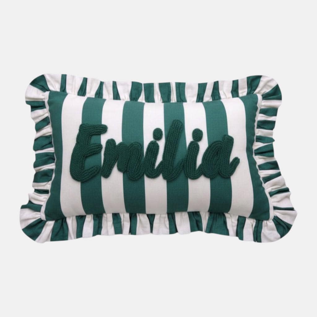 Personalised Ruffled Cushion -Handmade Punch Needle Decor | Boho Nursery Kids Children Room Styling | Custom Gift Baby Shower Ruffle Pillow - Hello Mello Store