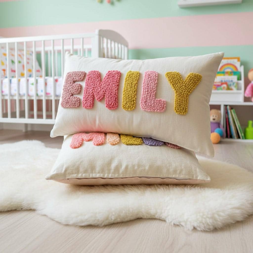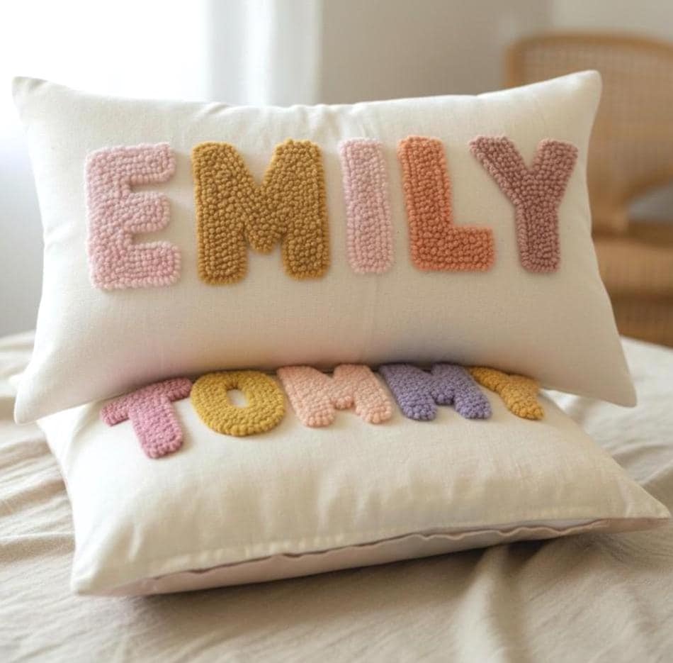 Add a warm and handmade touch to your space with our fully hand-embroidered name pillows. Each letter is carefully stitched by hand, giving the pillow a soft, textured, and artisanal look. Perfect for nurseries, kids’ rooms, bedrooms, and meaningful gift occasions.