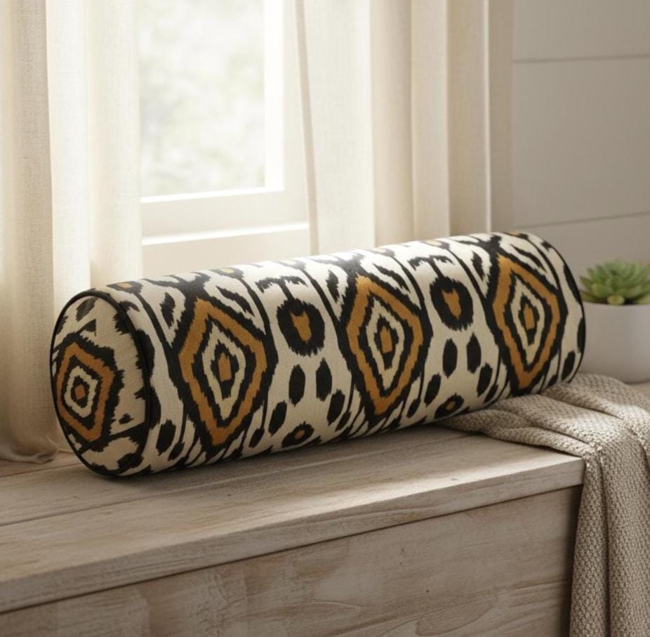 Add a timeless boho touch to your space with this Ikat patterned piped pillow cover. Featuring a bold ethnic design inspired by traditional Ikat motifs, this cushion cover is perfect for both indoor and outdoor use.