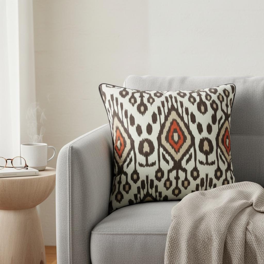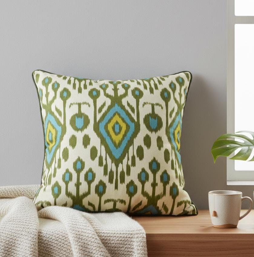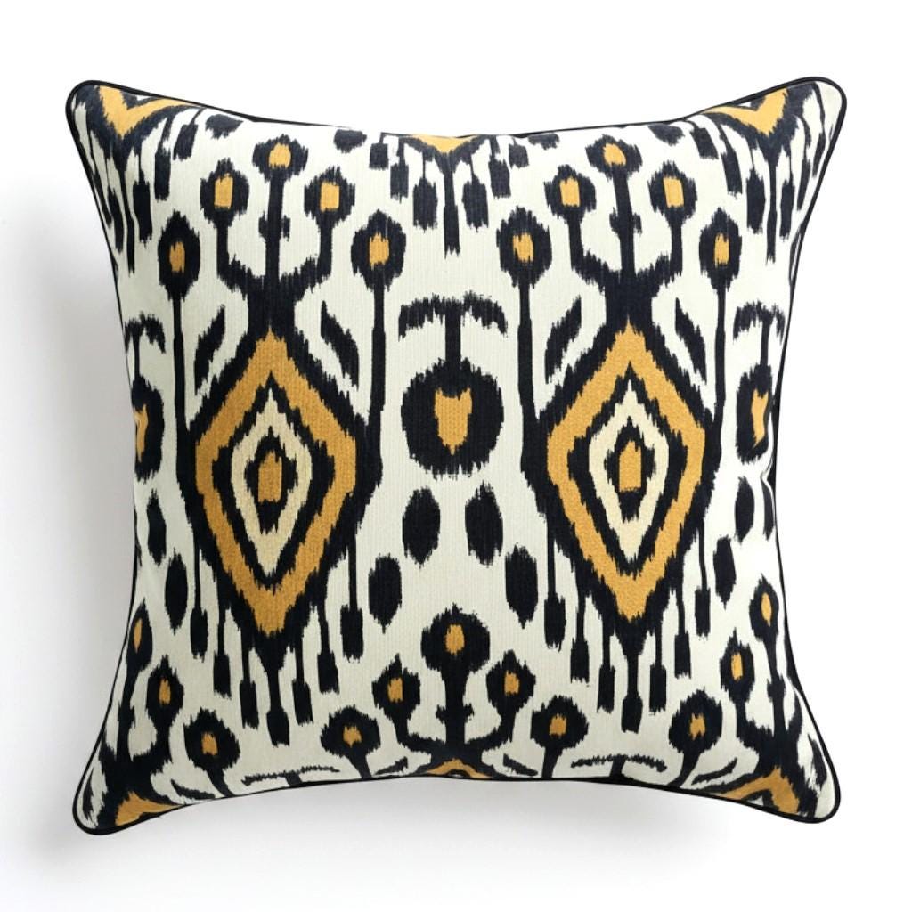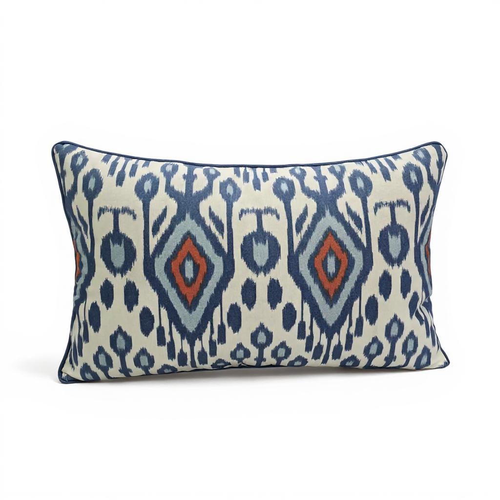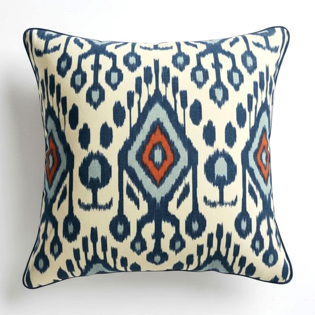 Ikat Cushion Cover | Piping Pillow | Water-Resistant Fabric | Indoor & Outdoor Pillow - Hello Mello Store
