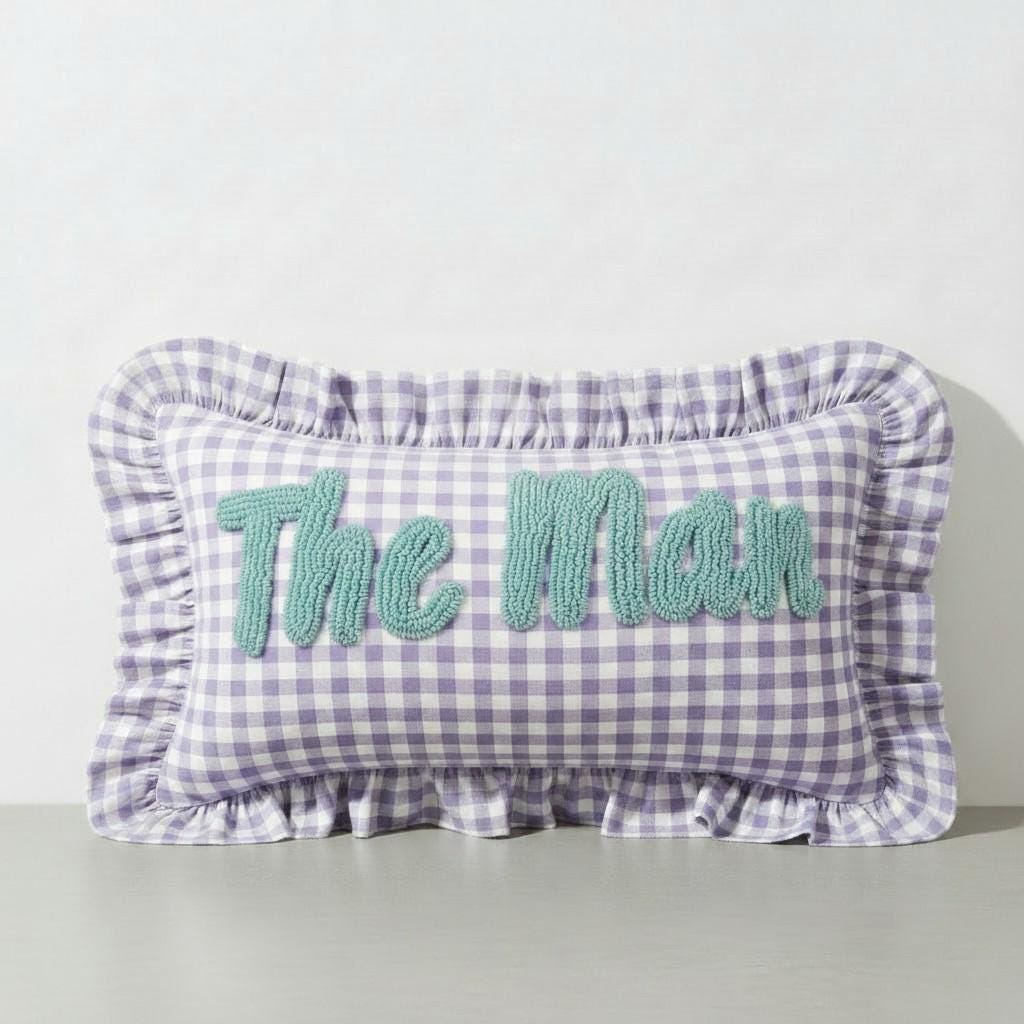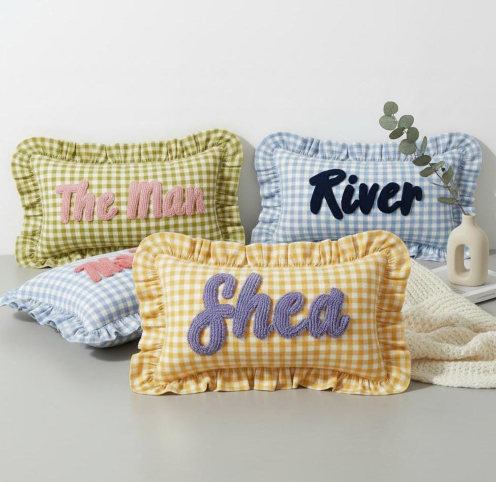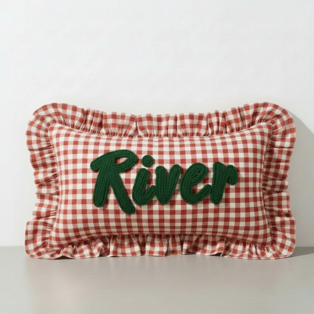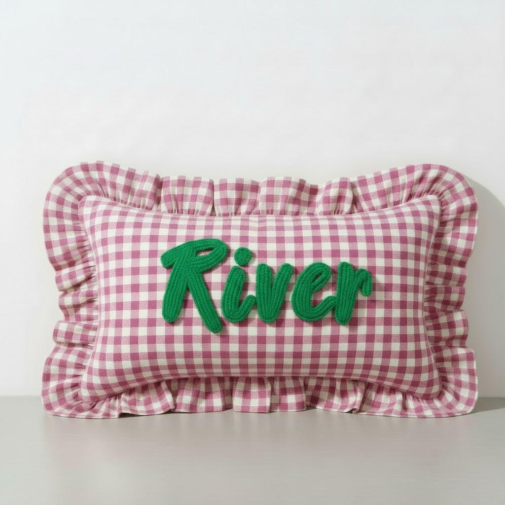Personalised Ruffled Cushion -Handmade Punch Needle Decor | Boho Nursery Kids Children Room Styling | Custom Gift Baby Shower Ruffle Pillow - Hello Mello Store