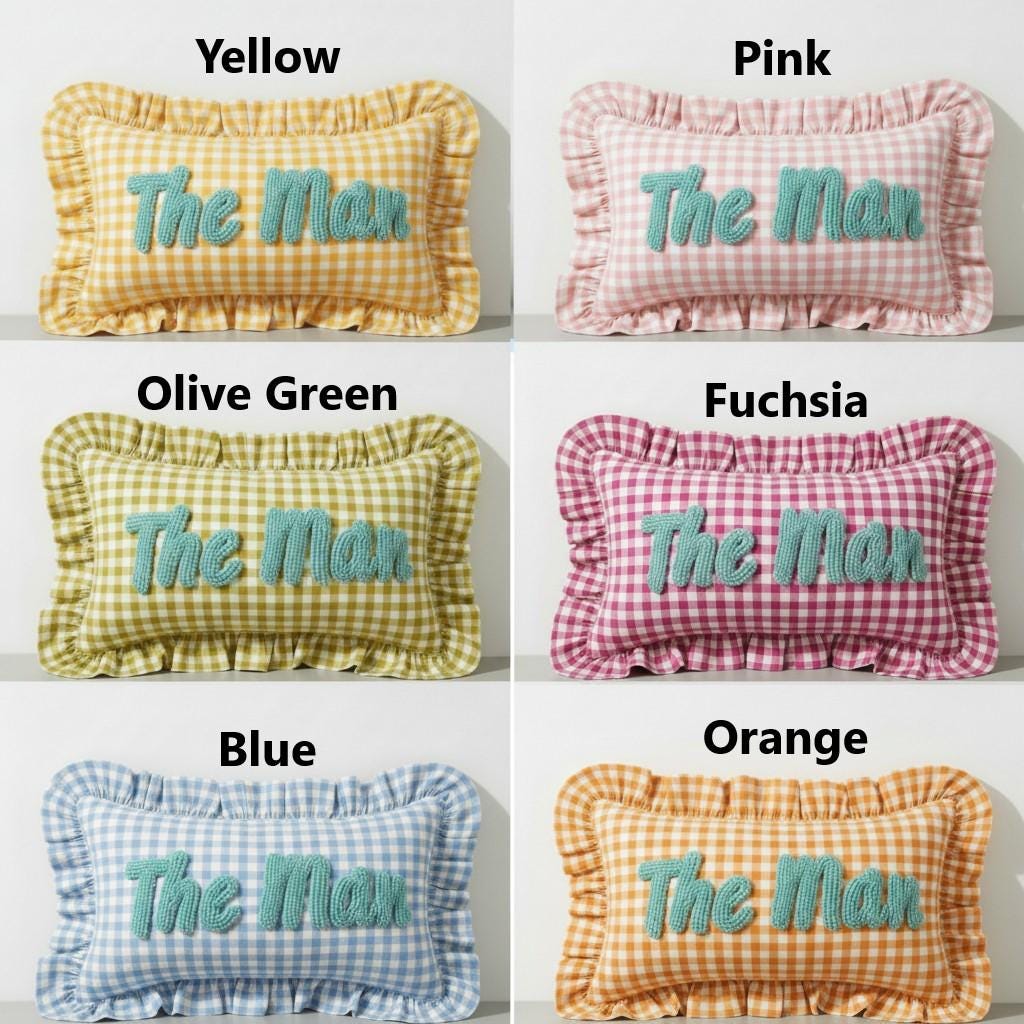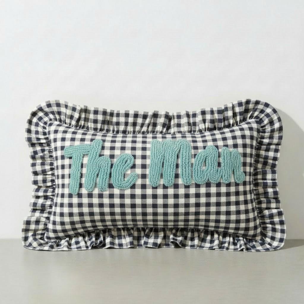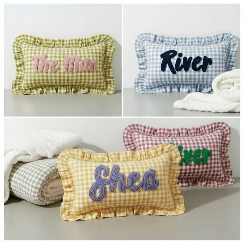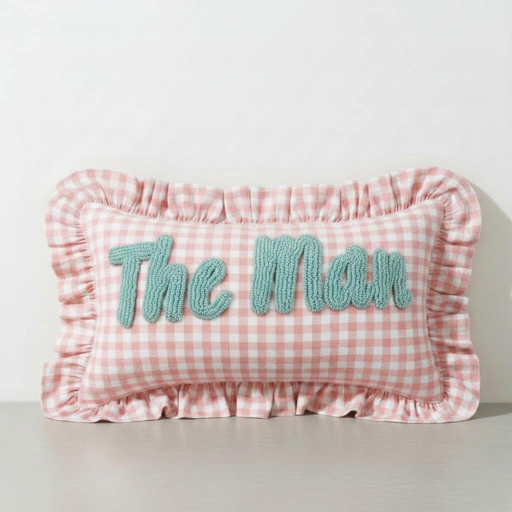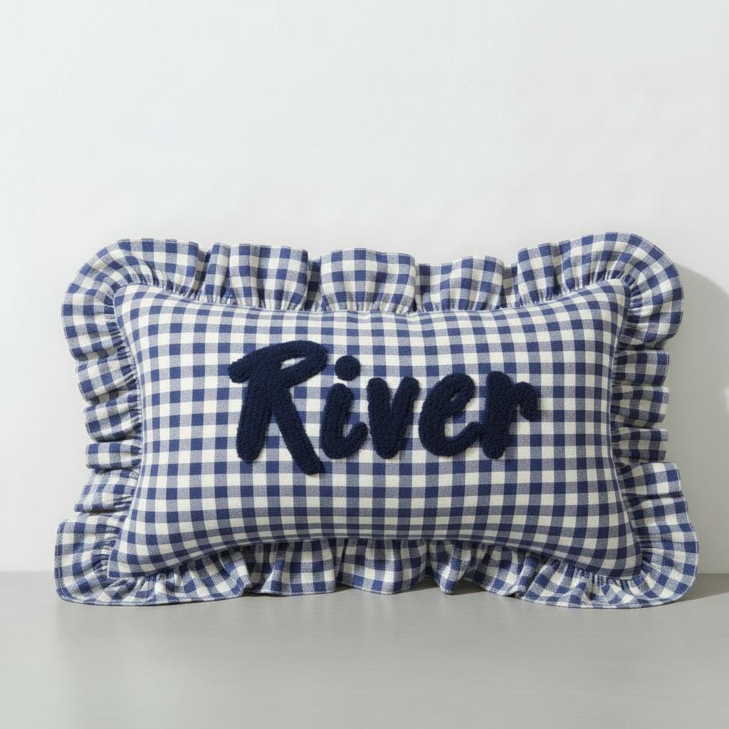 Personalised Ruffled Cushion -Handmade Punch Needle Decor | Boho Nursery Kids Children Room Styling | Custom Gift Baby Shower Ruffle Pillow - Hello Mello Store