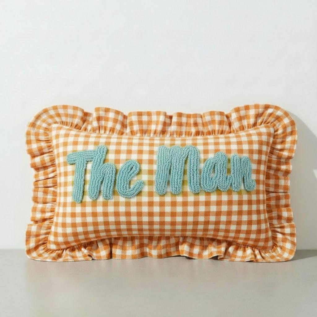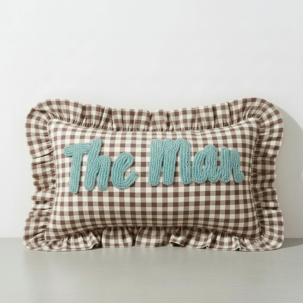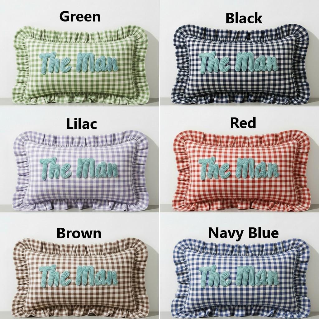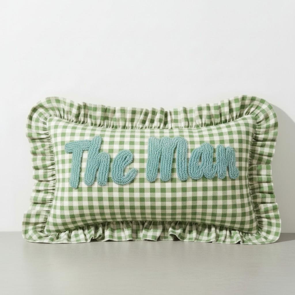 Personalised Ruffled Cushion -Handmade Punch Needle Decor | Boho Nursery Kids Children Room Styling | Custom Gift Baby Shower Ruffle Pillow - Hello Mello Store