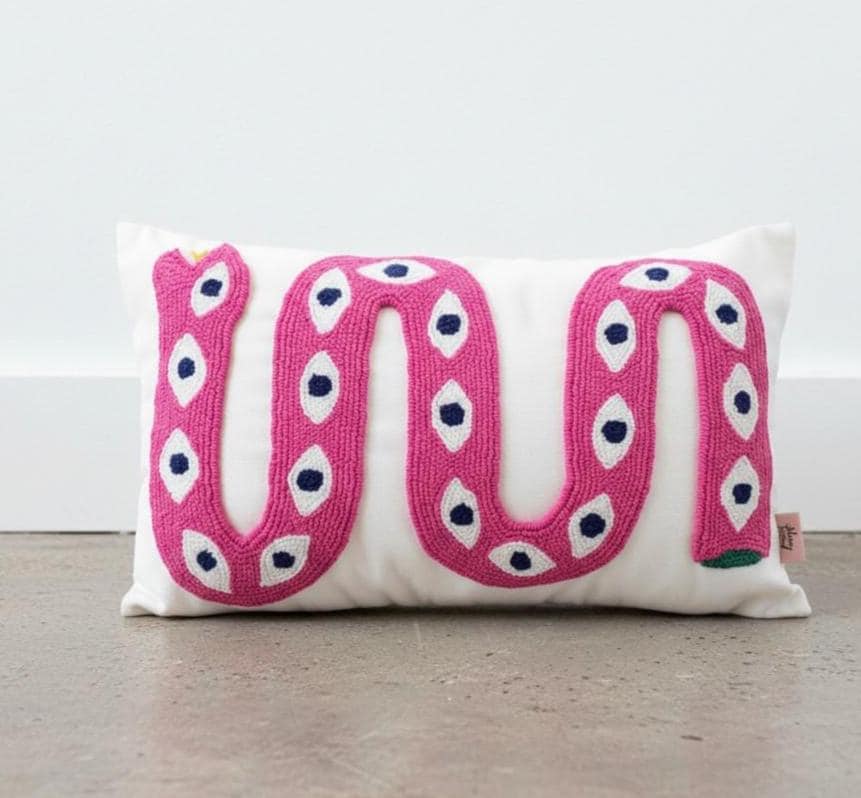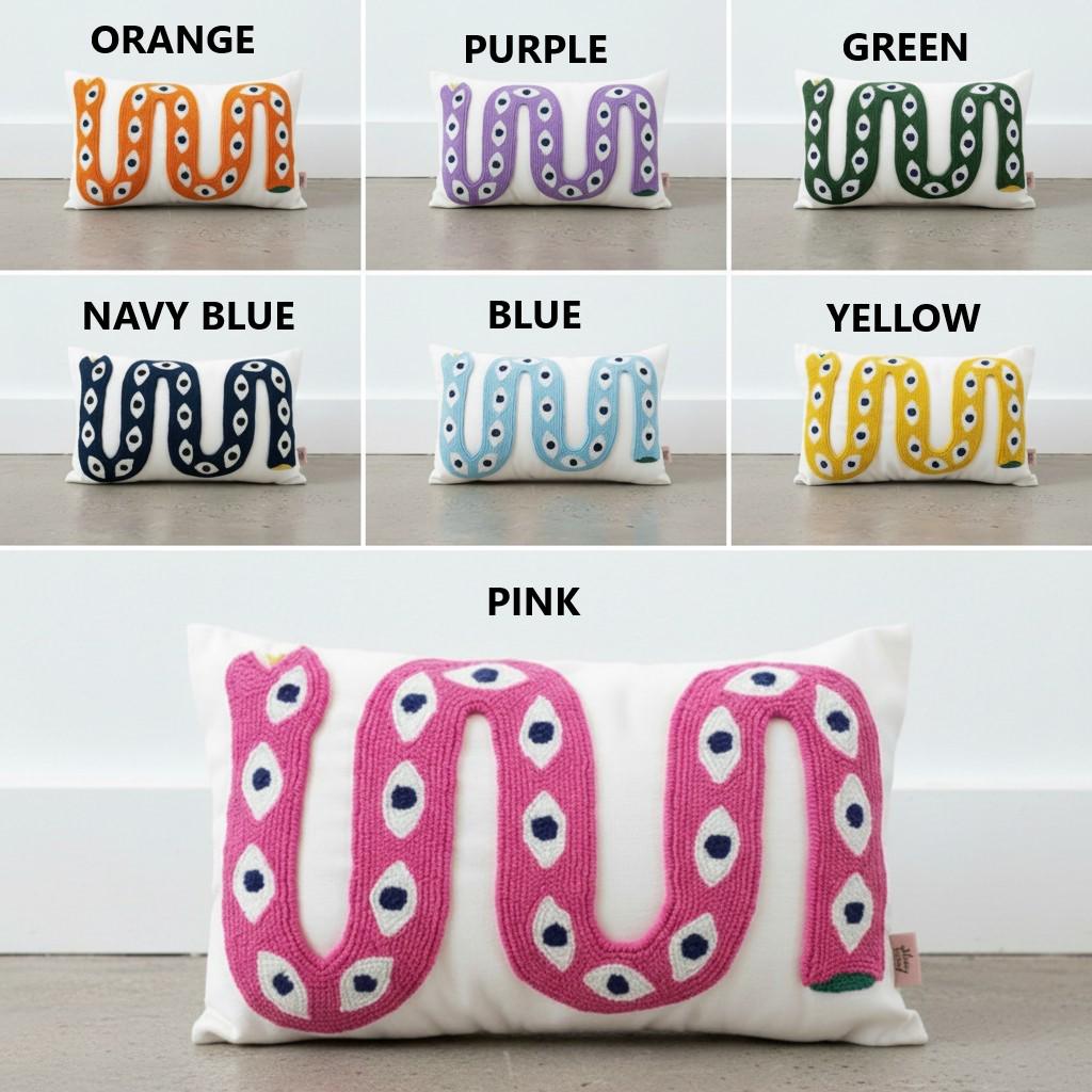 Handmade Snake Pillow Cover - Punch Embroidered Boho Cushion - Colorful Decorative Throw Pillow