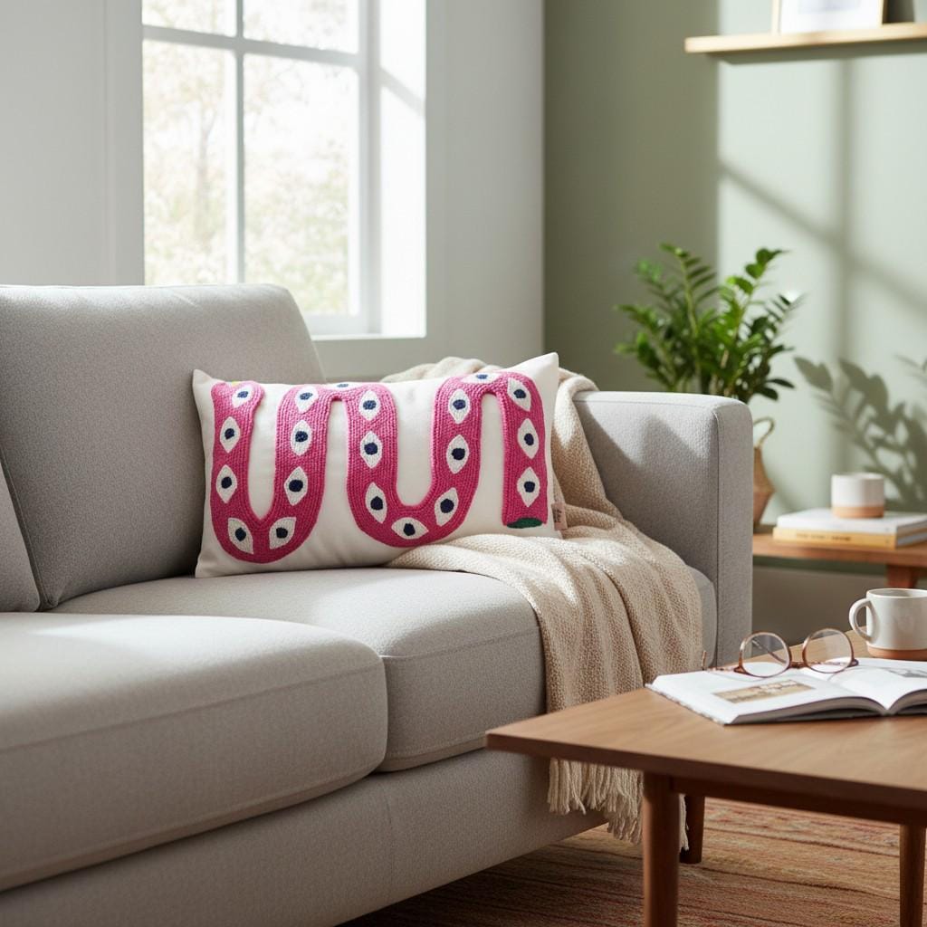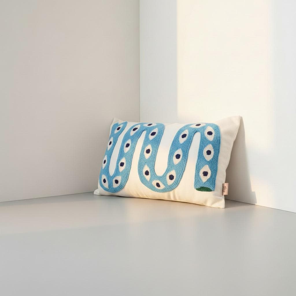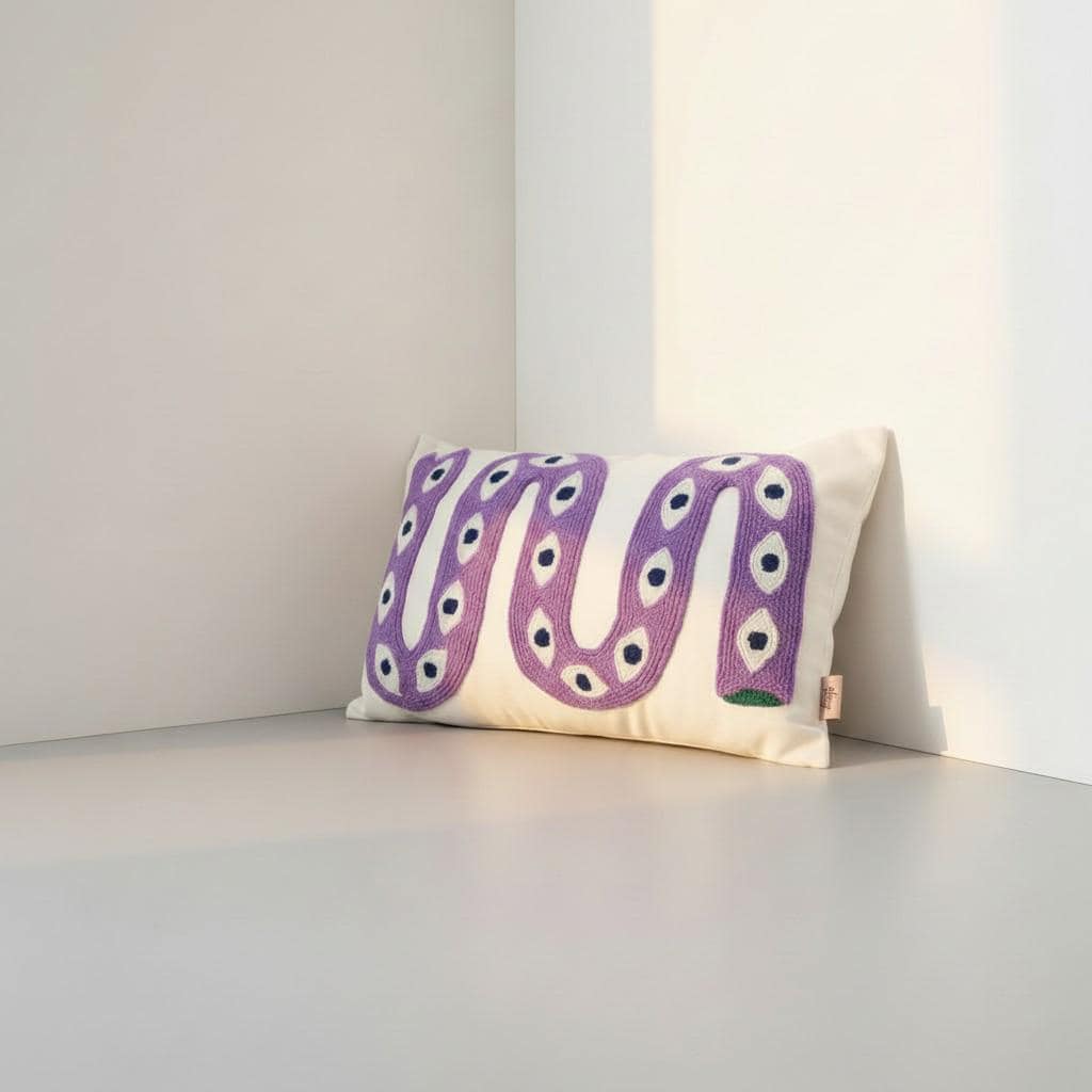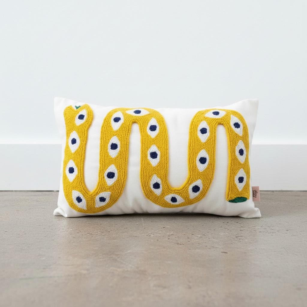 Bring a bold artistic touch to your home with this handmade snake pillow cover, designed for lovers of unique and eclectic decor. This eye-catching piece features a vibrant snake motif with an intricate eye pattern, perfect for adding a statement to any boho-inspired space.