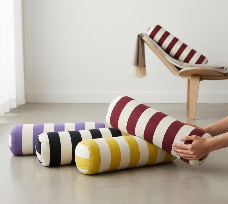 Striped Bolster Pillow - Cylinder Cushion - Decorative Sofa Cushion - Home Decor Gift